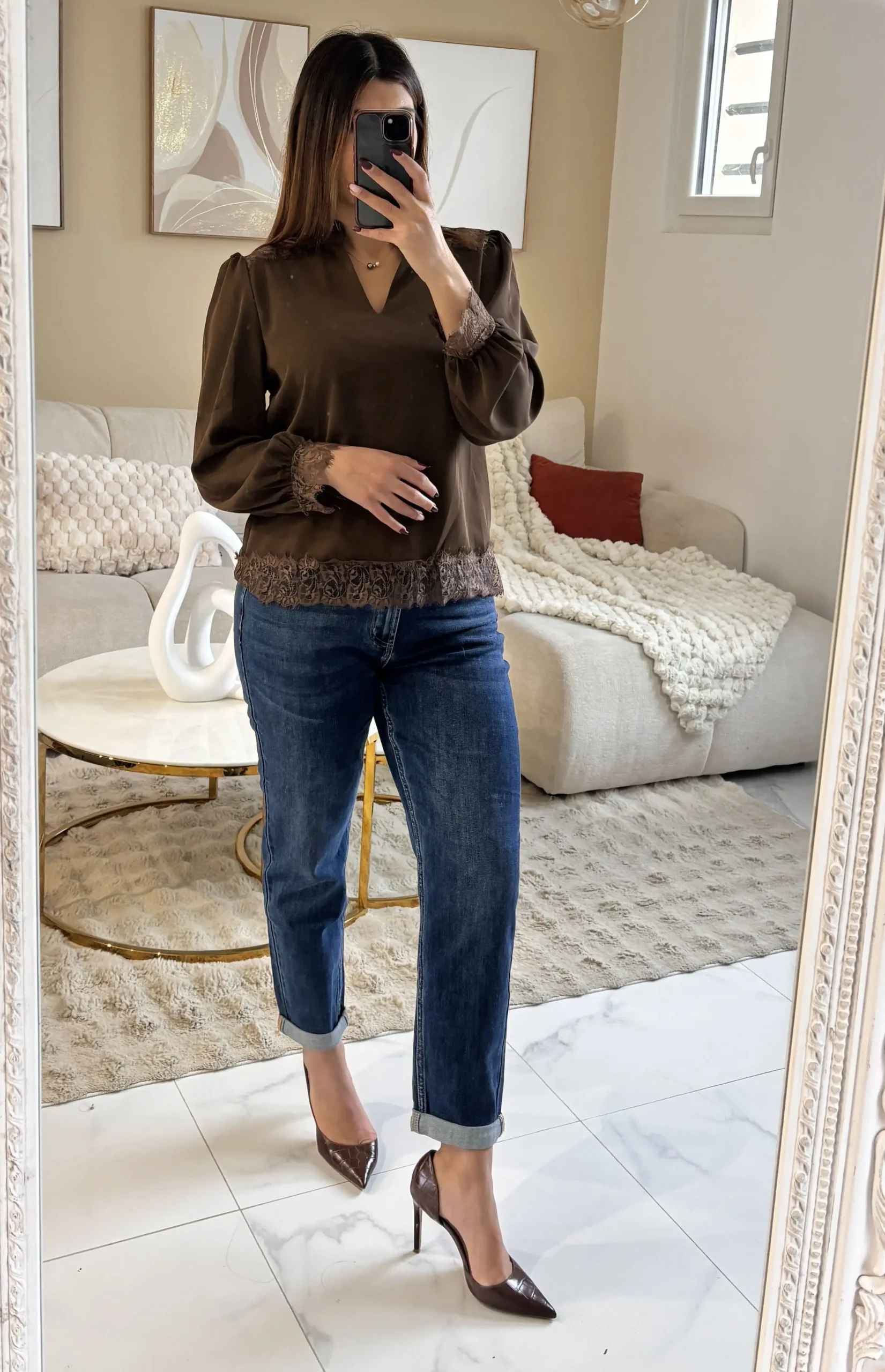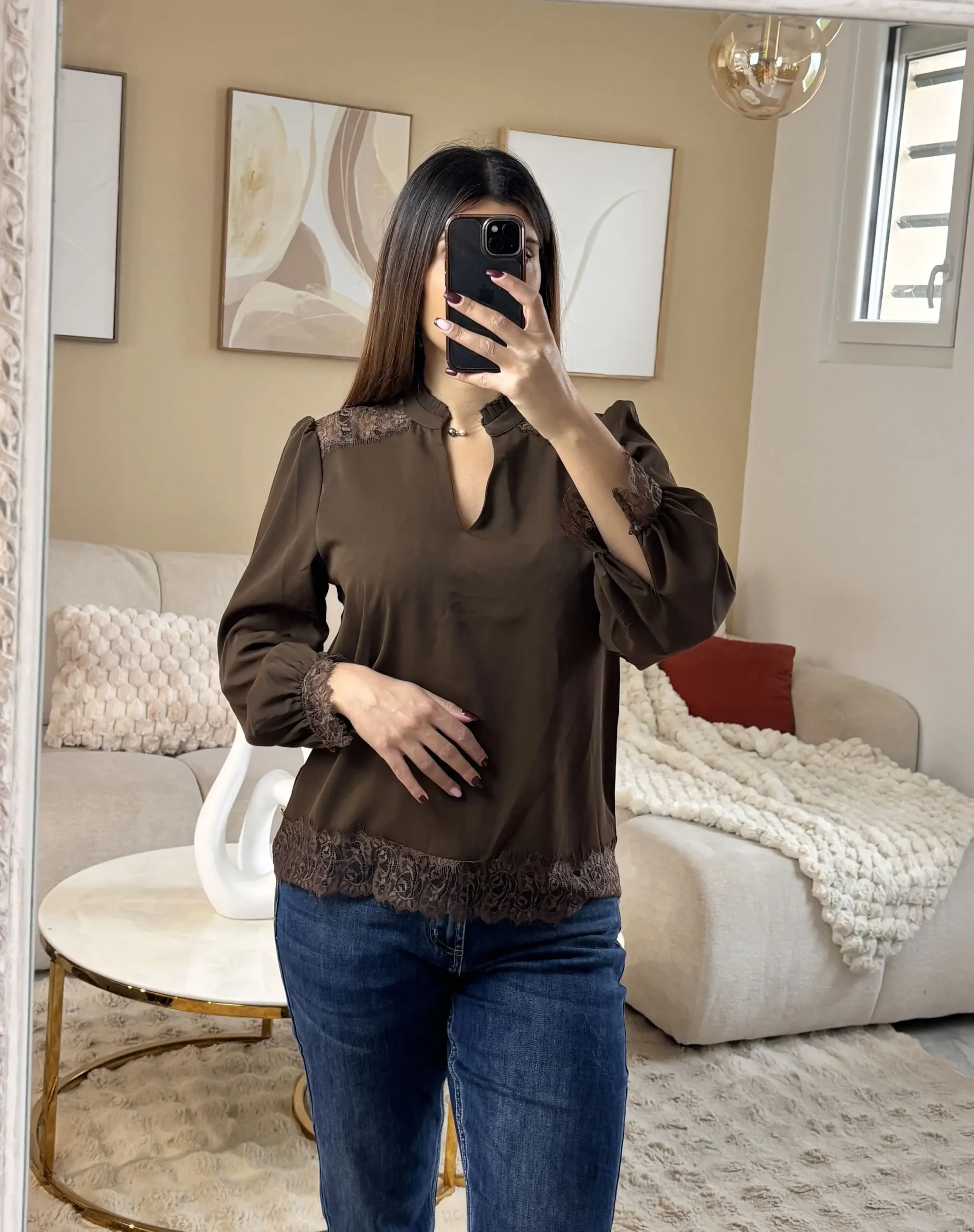 Blouse dentellée chocolat