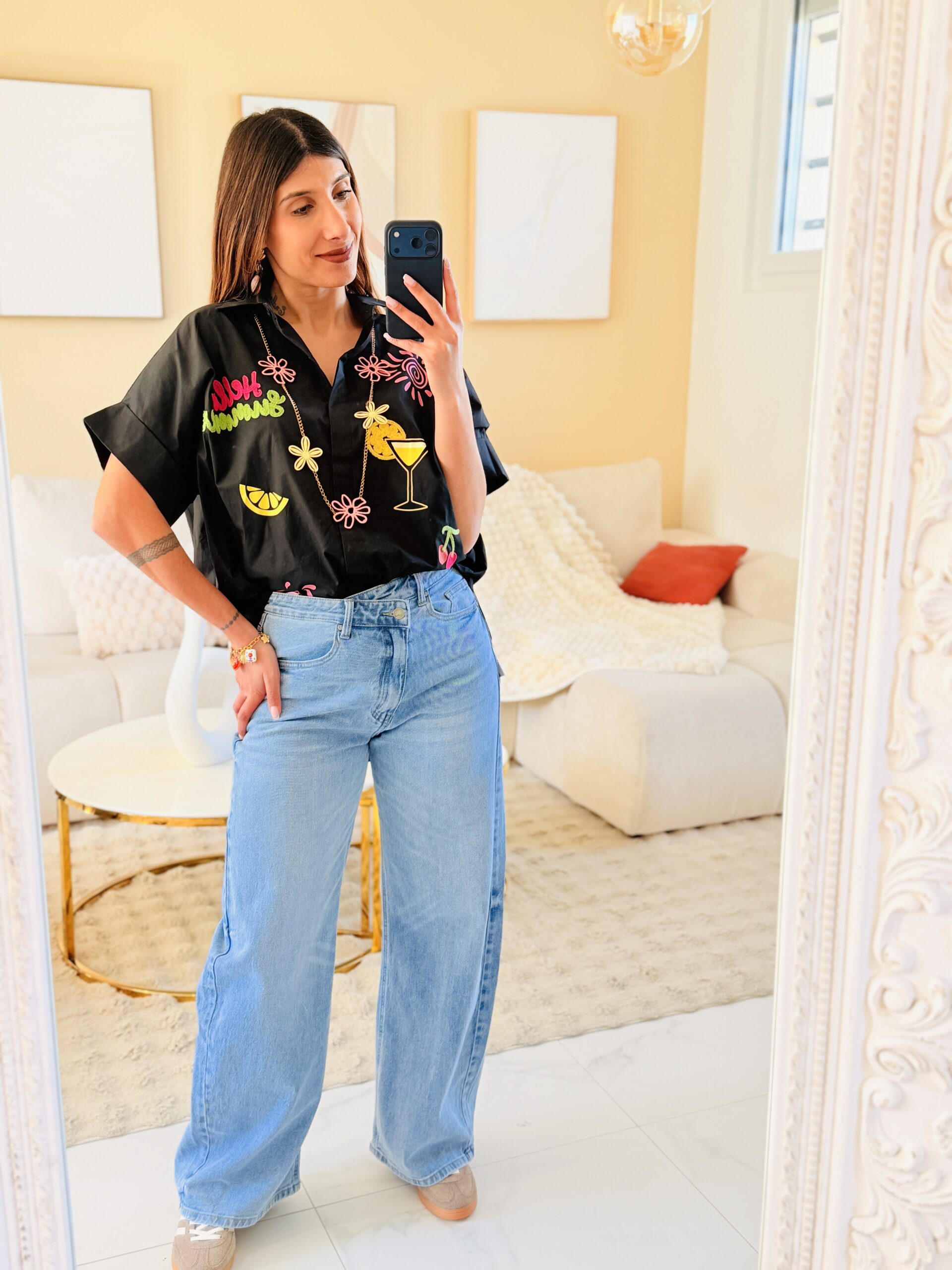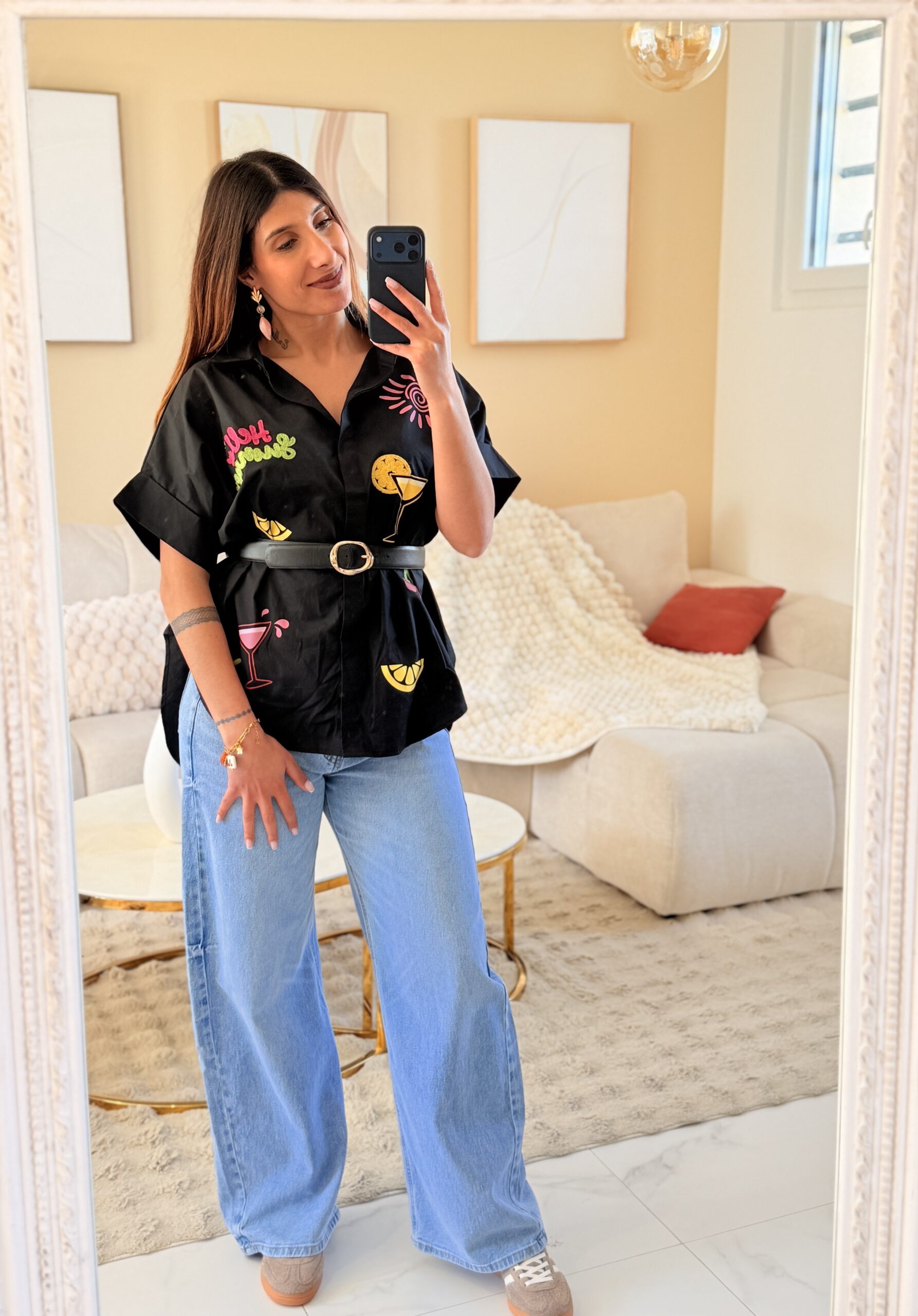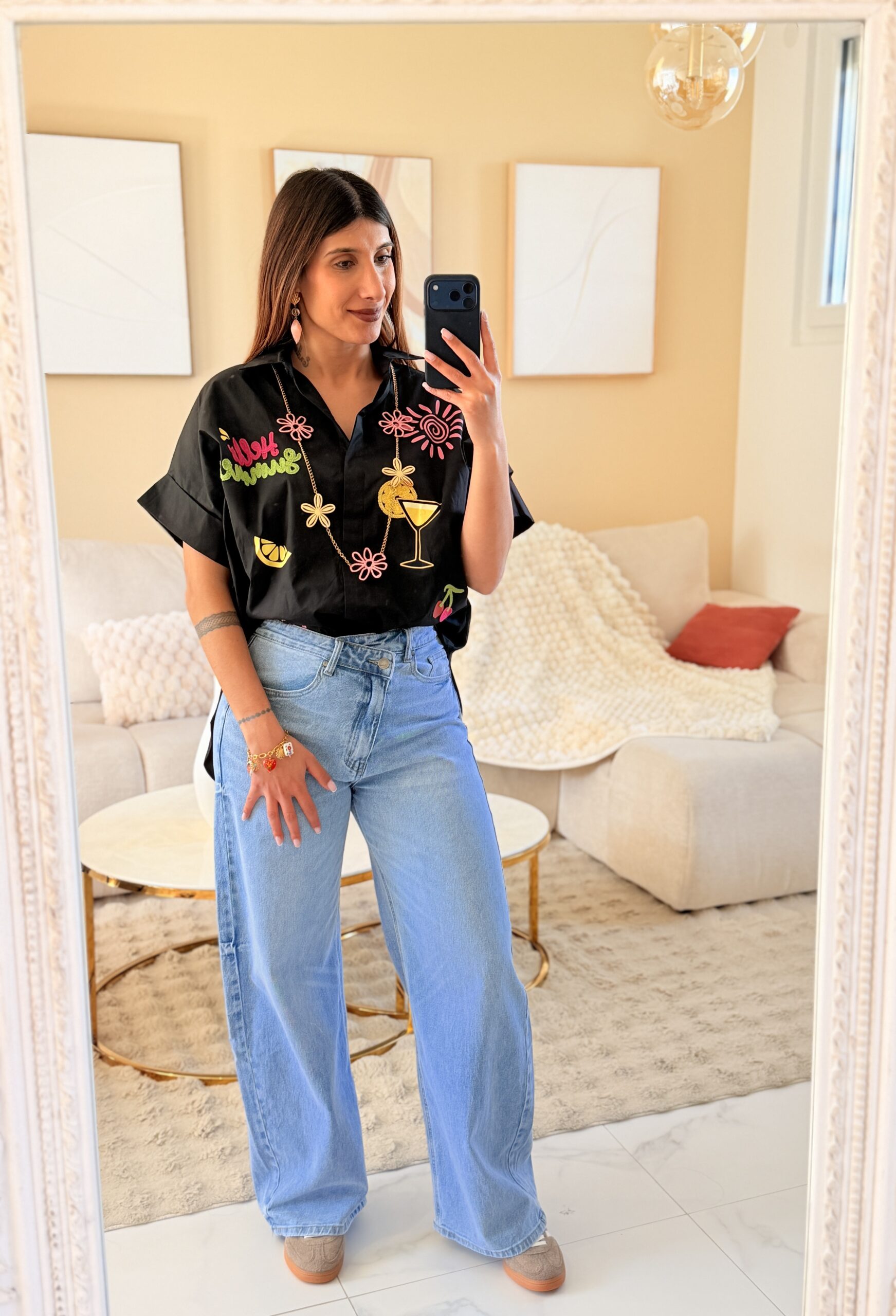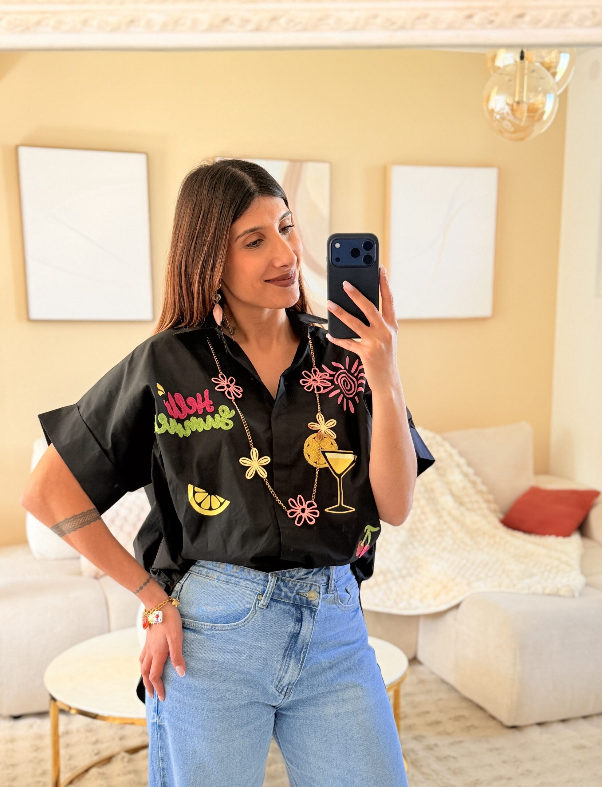 Blouse au style fun et solaire, avec ses motifs colorés qui attirent tous les regards. Une pièce forte, légère et ultra tendance pour un look qui ne passe pas inaperçu!