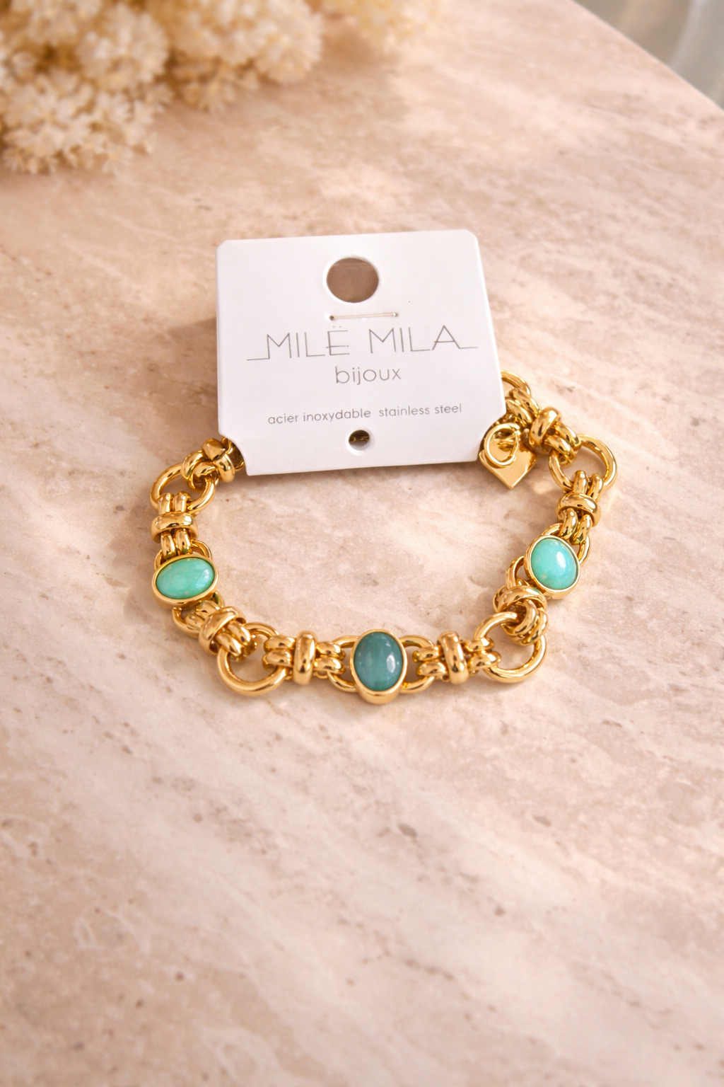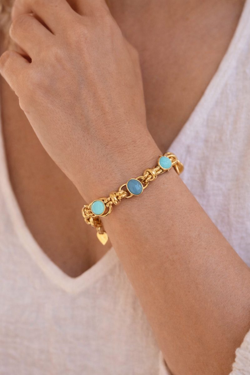 Bracelet chaîne et pierres turquoise en acier inoxydable
