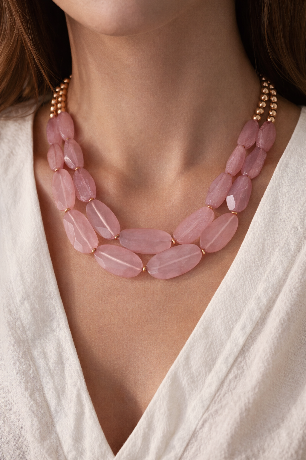 Collier double perle Quartz couleur rose de quoi sublimer vos tenues !