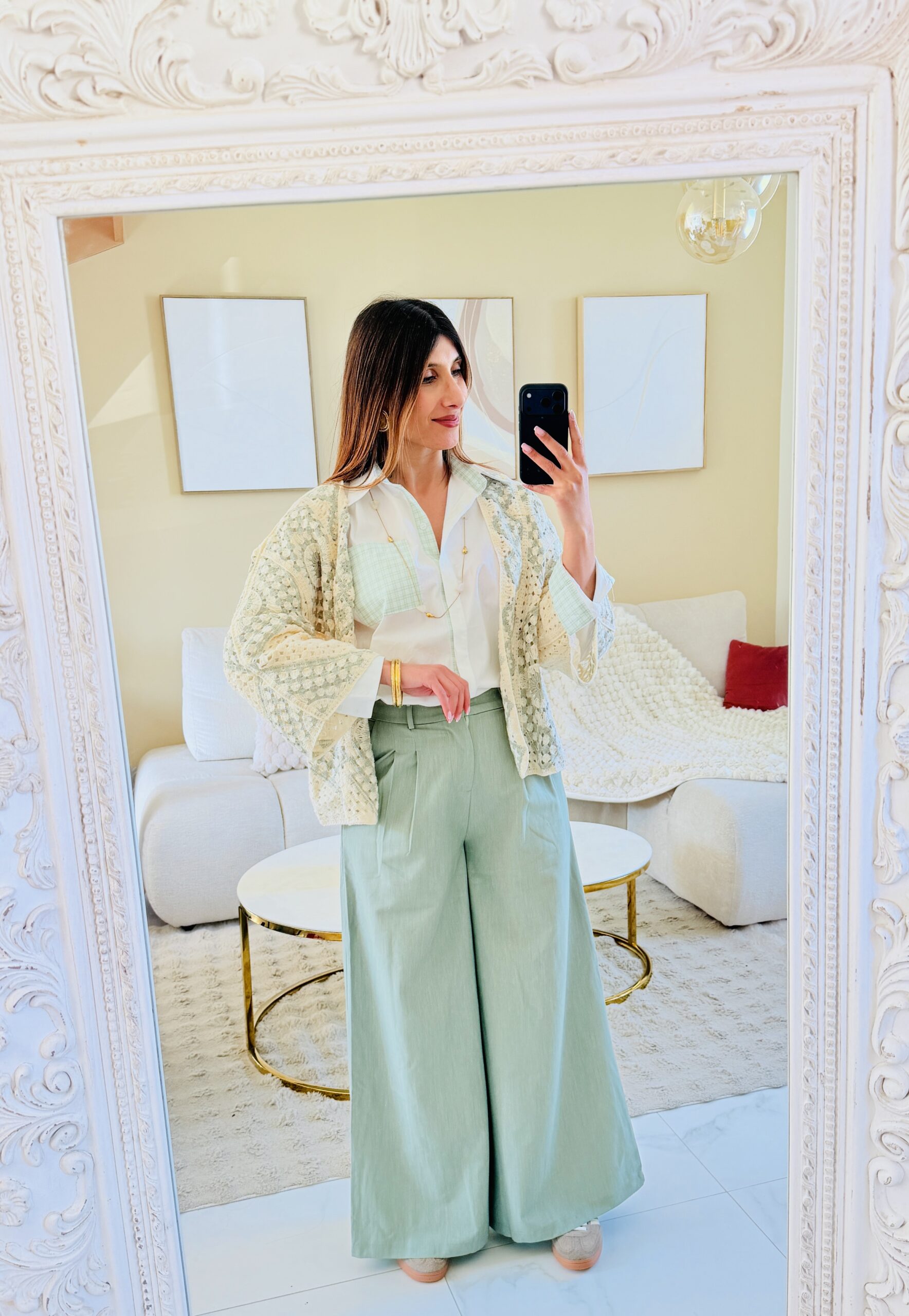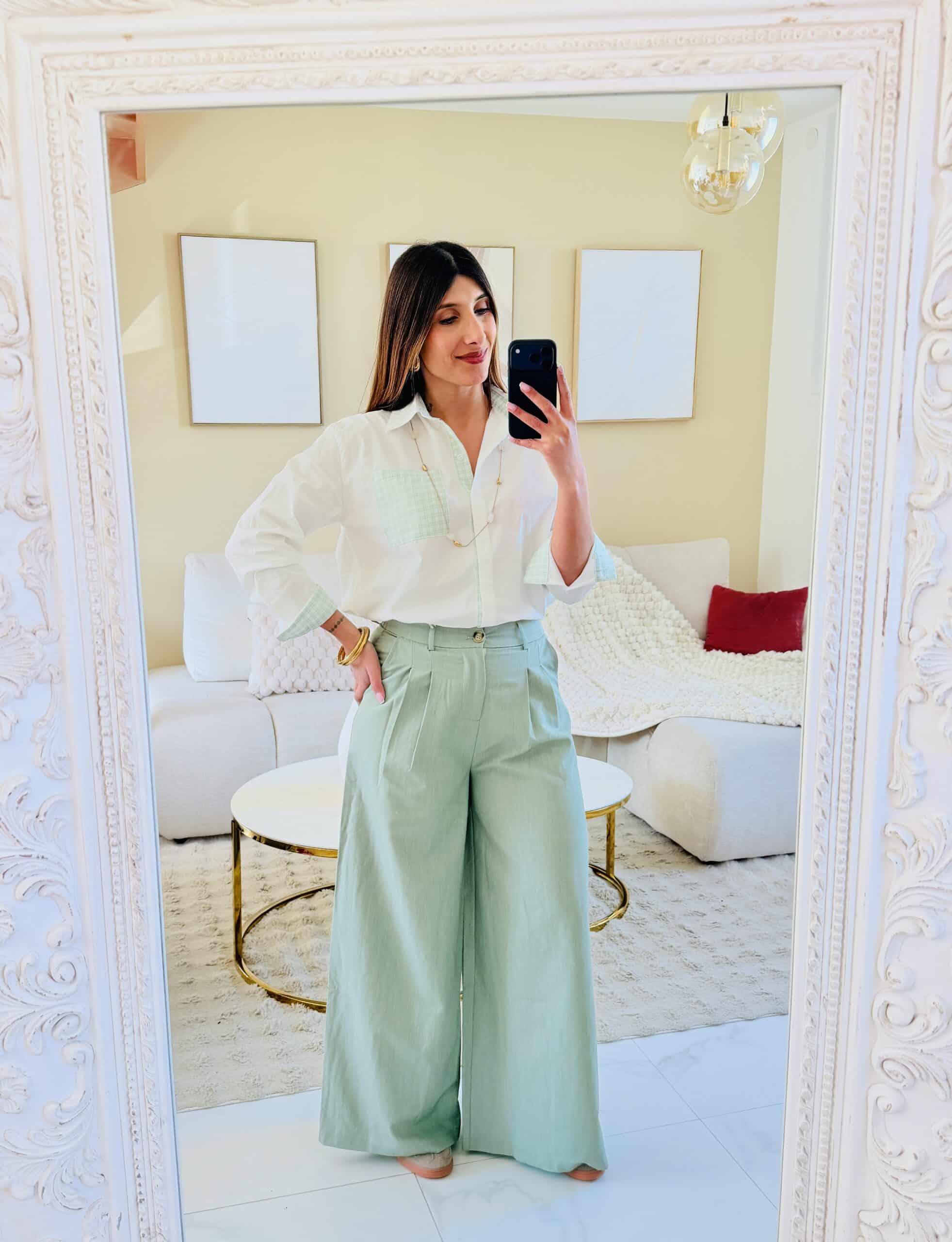 Magnifique pantalon large et fluide couleur vert sauge