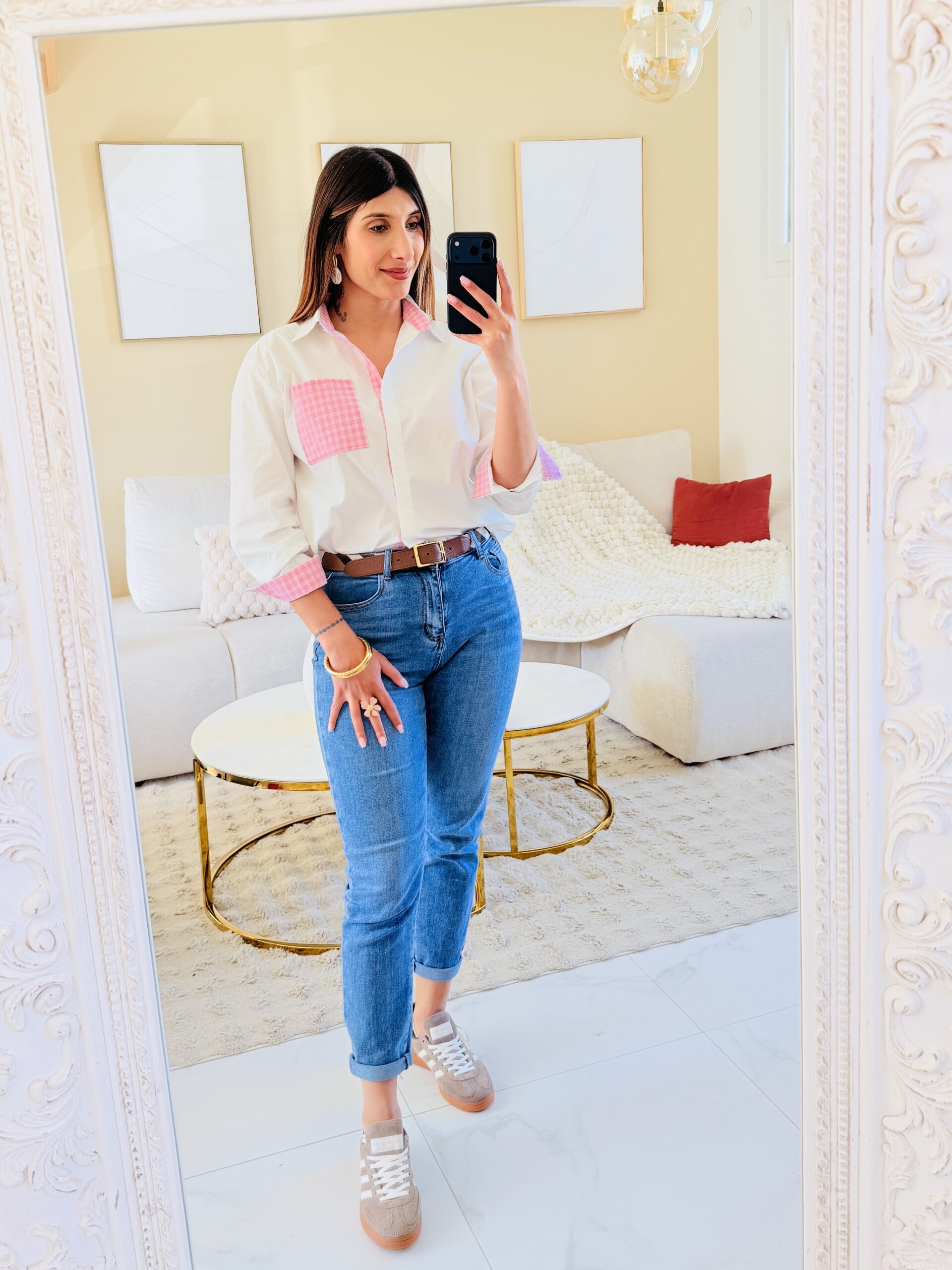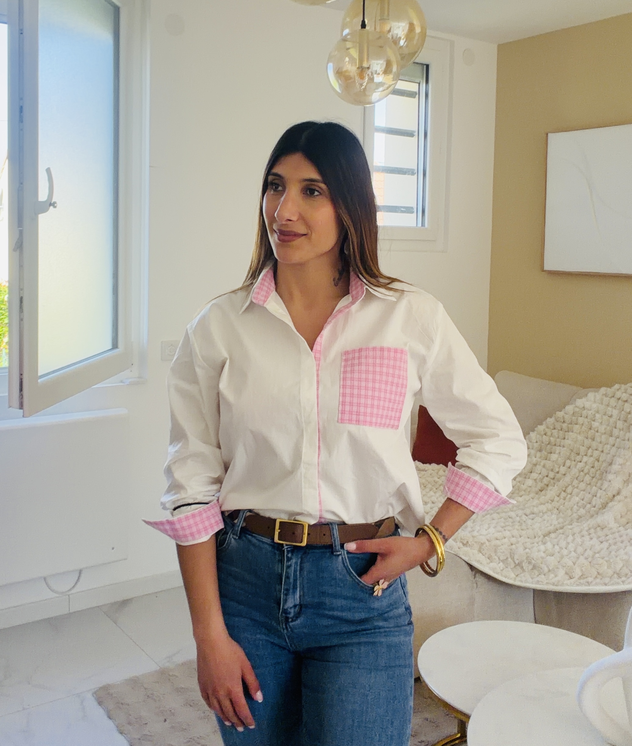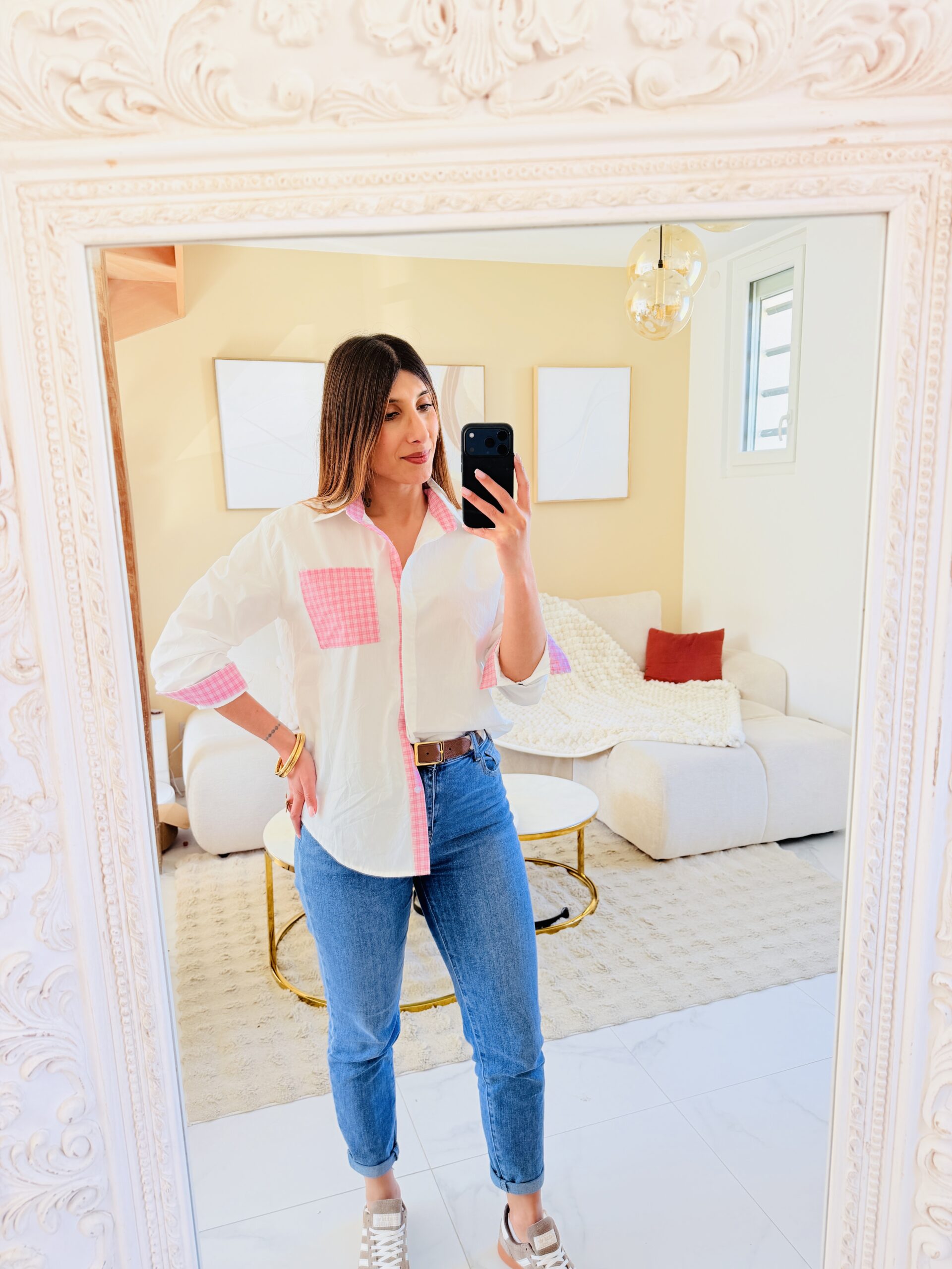 Sublime longue chemise en coton avec poche rose et détails boutons et manches !