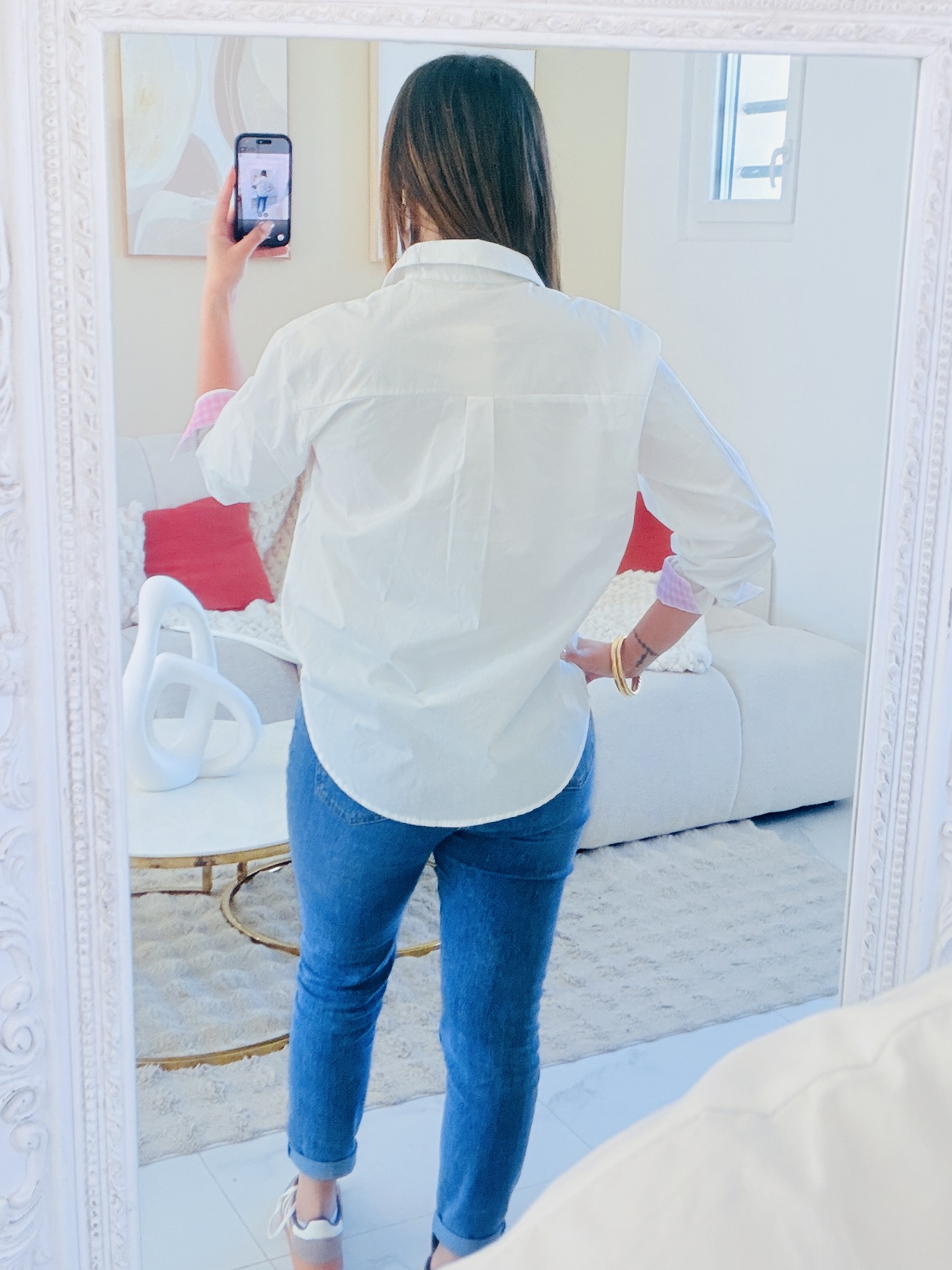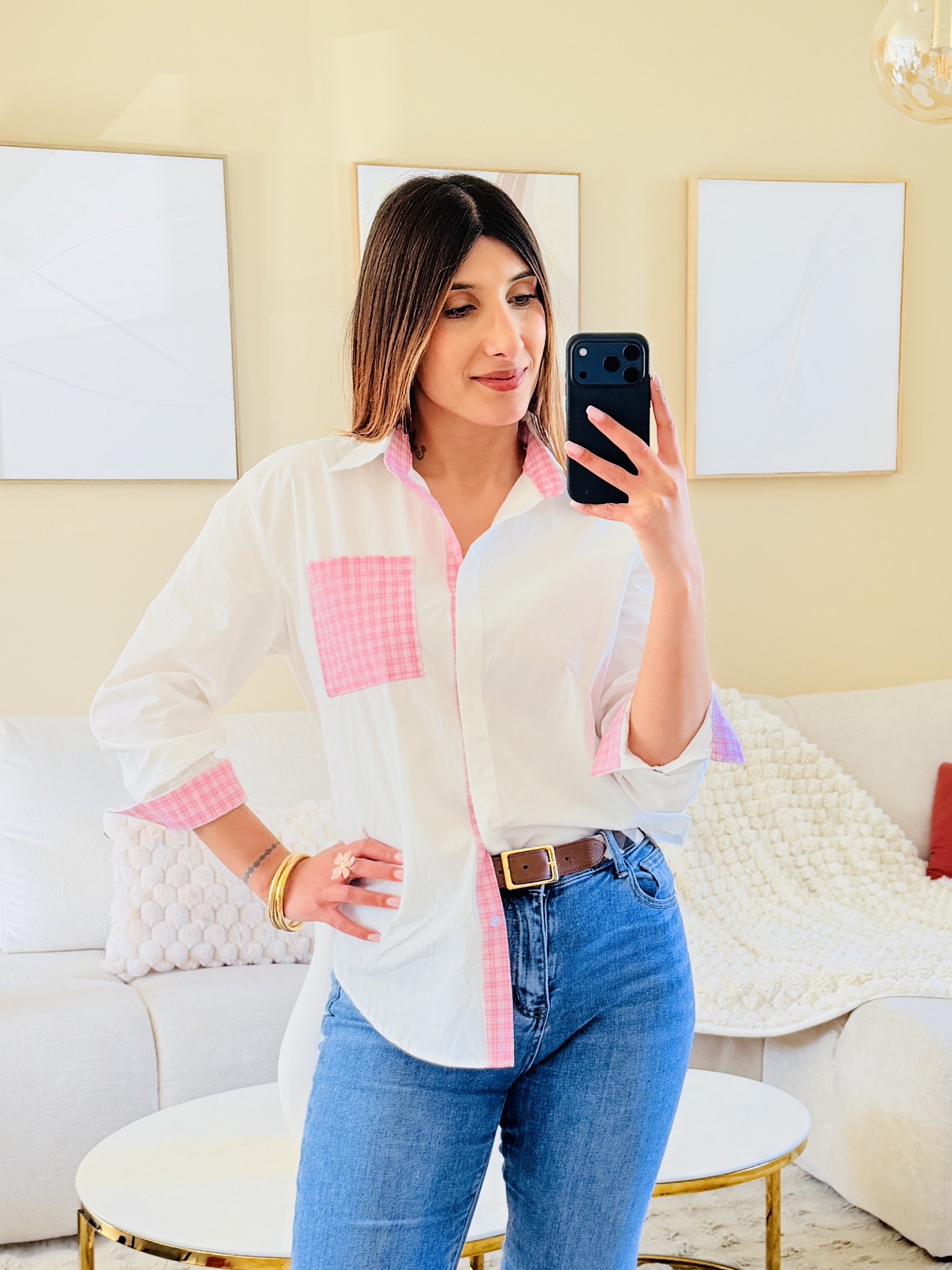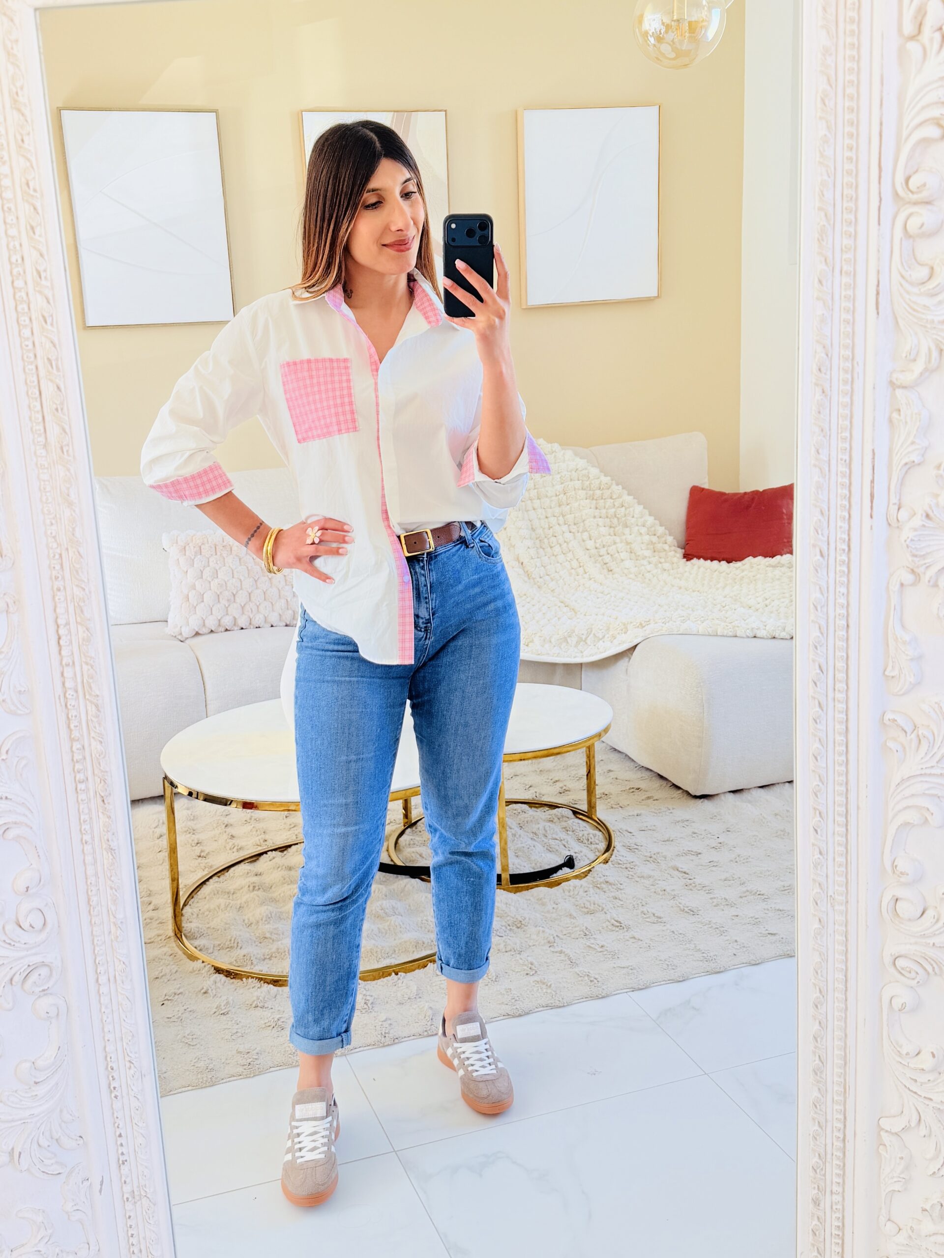 Sublime longue chemise en coton avec poche rose et détails boutons et manches !
