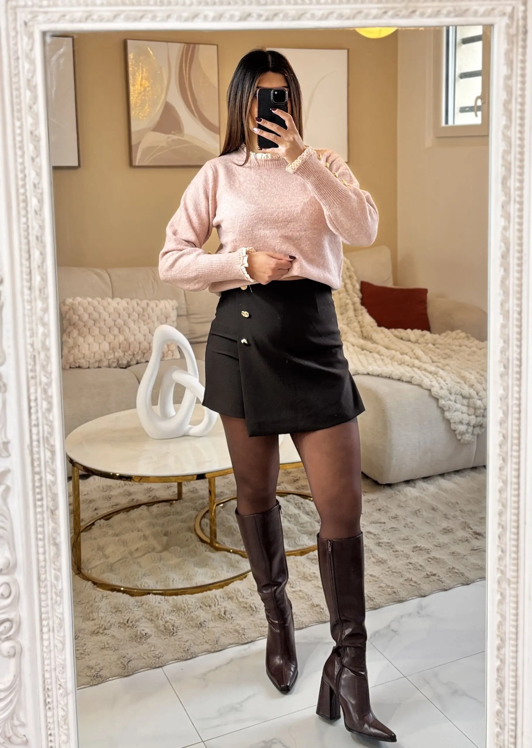 Short couleur chocolat, rehaussé de boutons dorés pour une allure chic et affirmée.