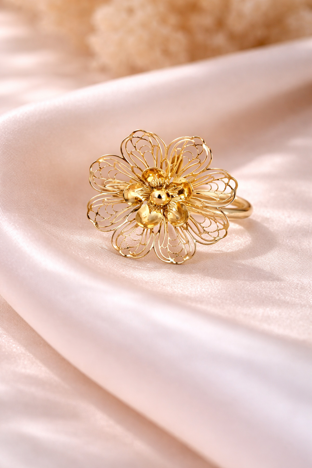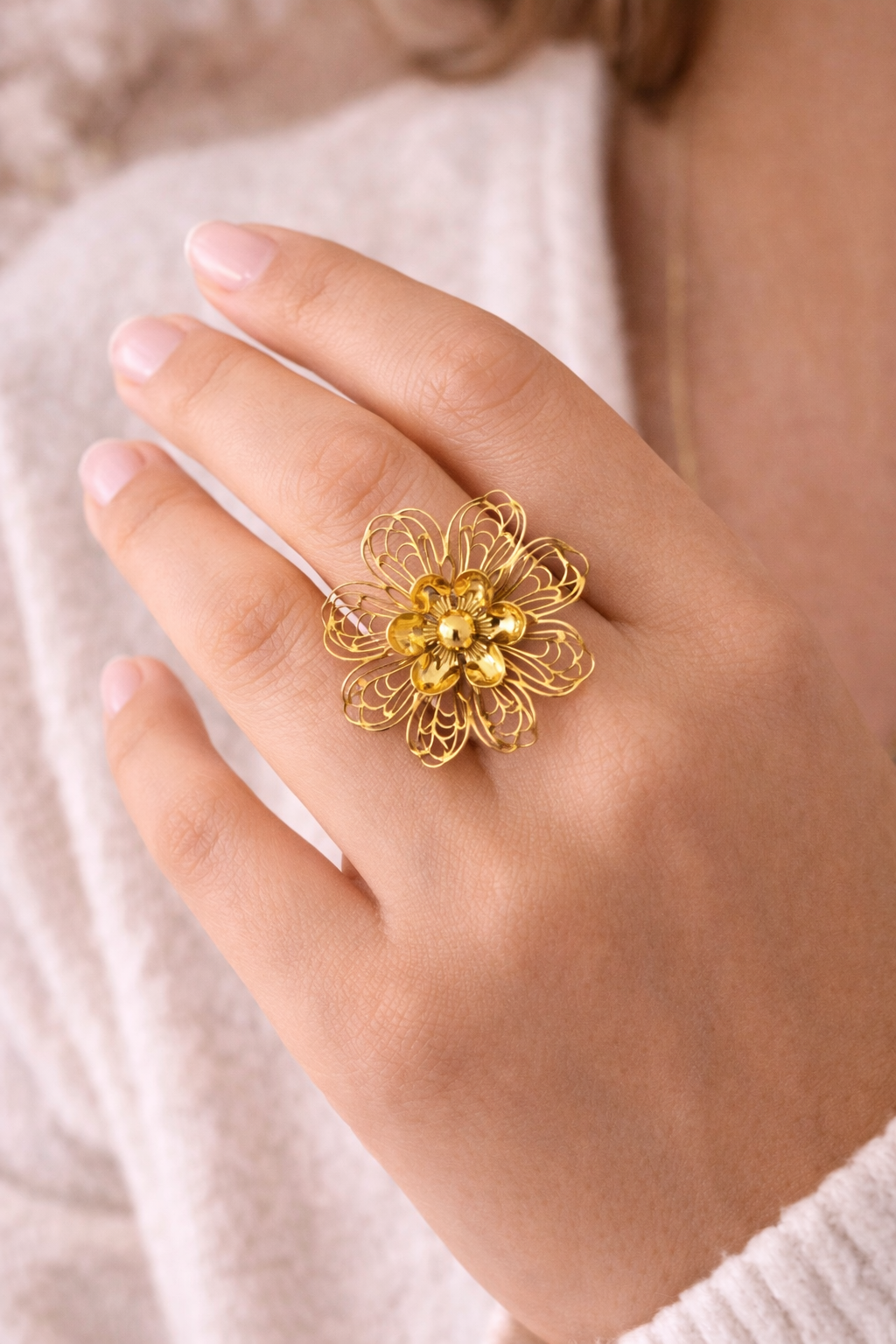 Sublime bague en forme de fleur raffiné en acier inoxydable