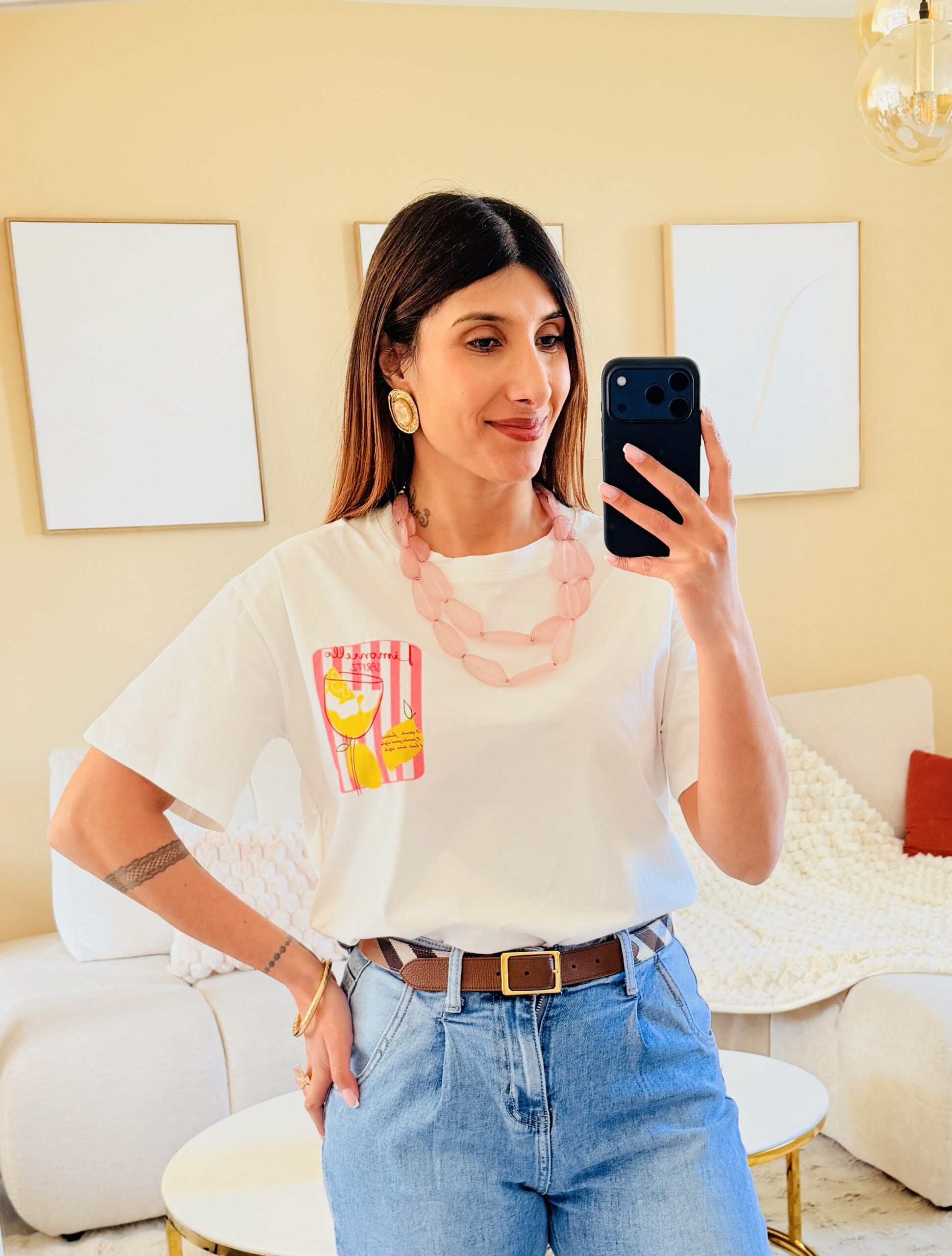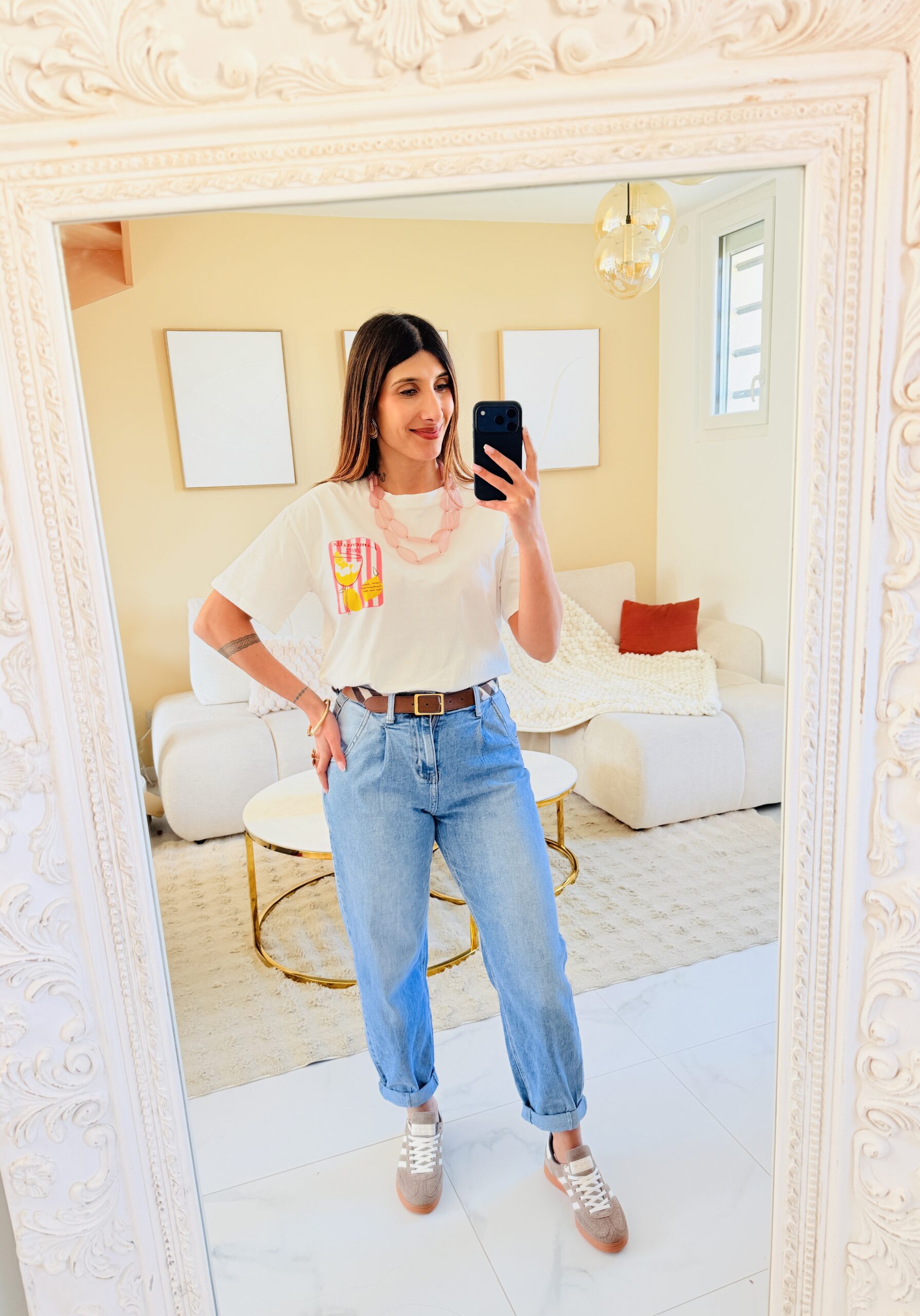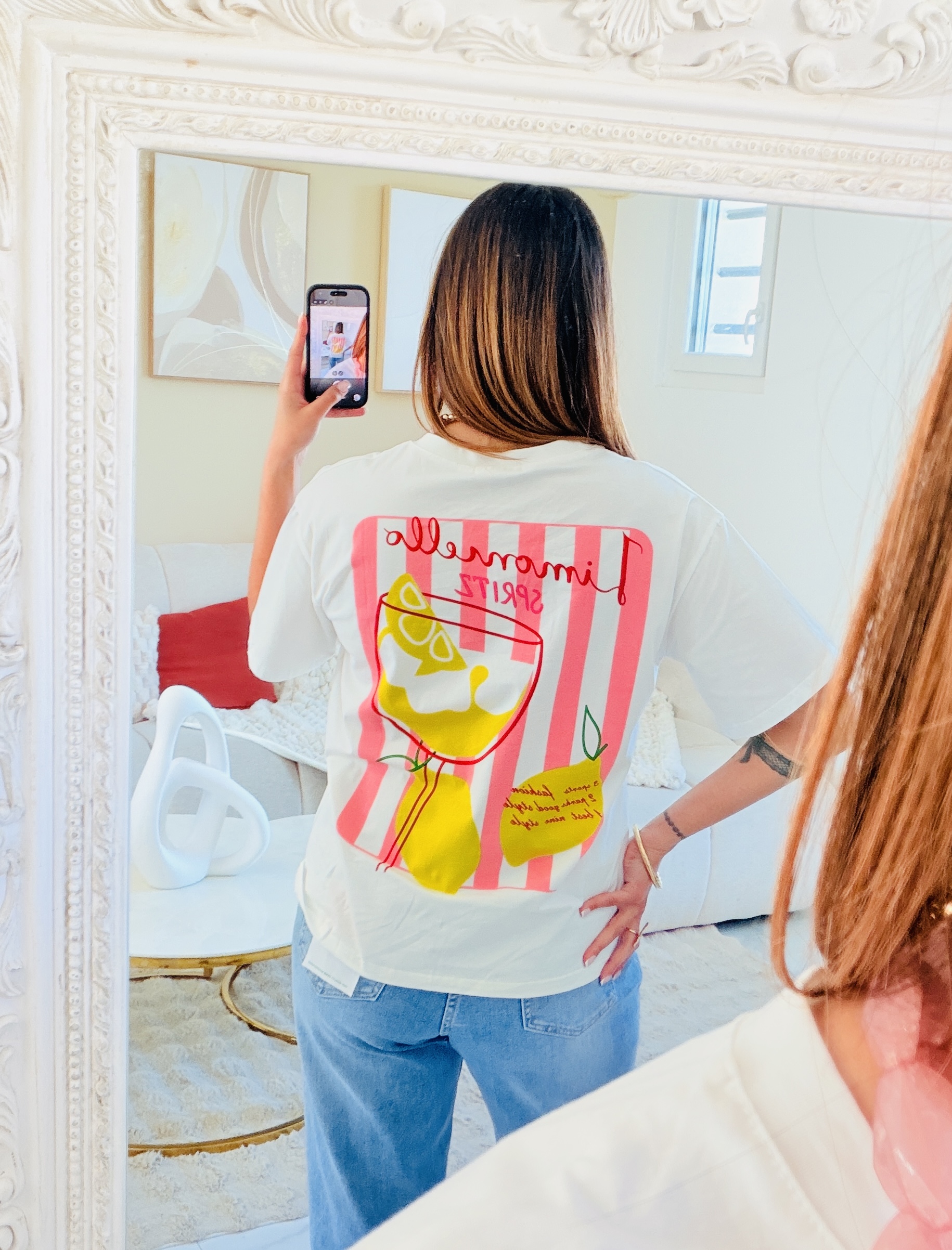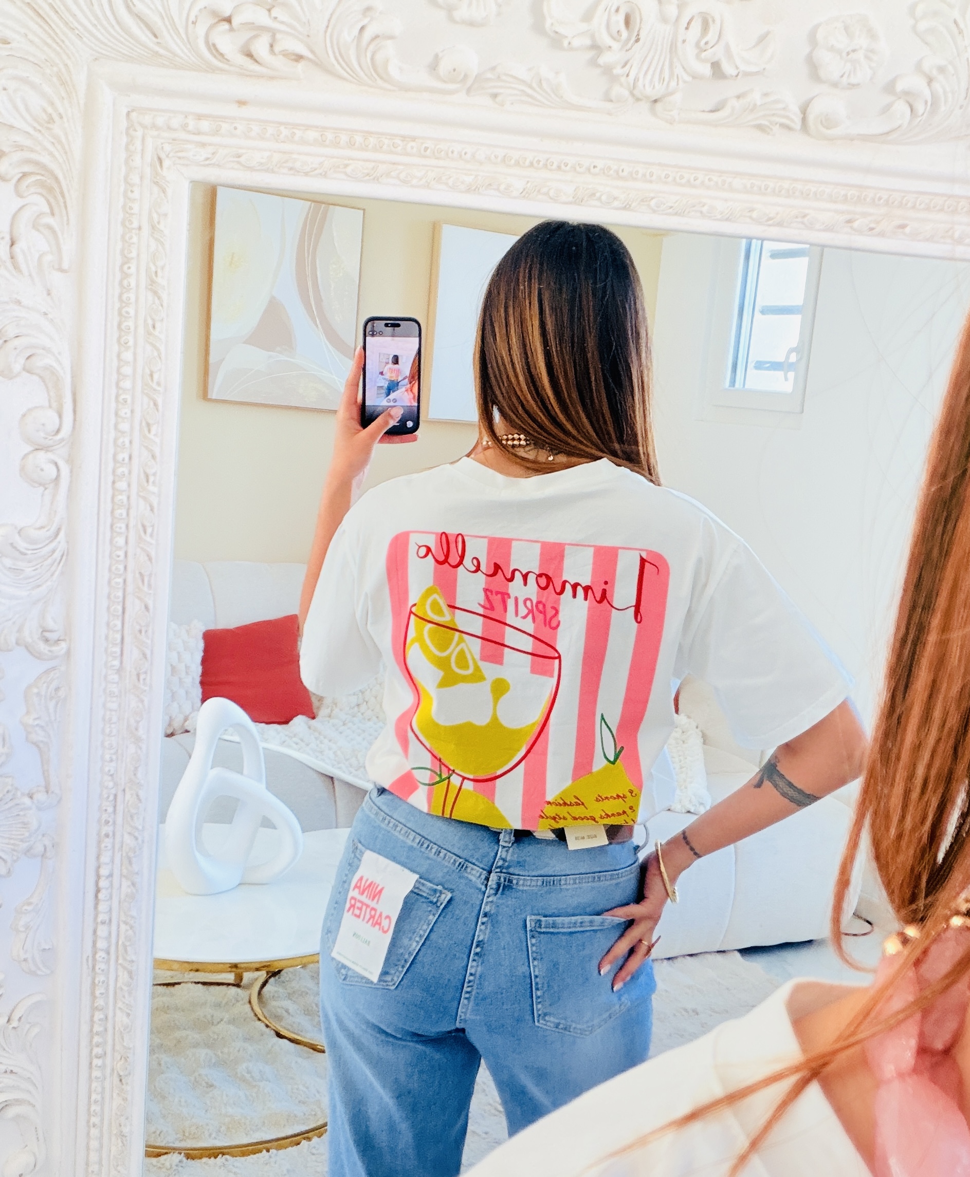 Sublime top blanc motif dos LIMONRELLO. A associer avec un jean Ballon ou Mom !