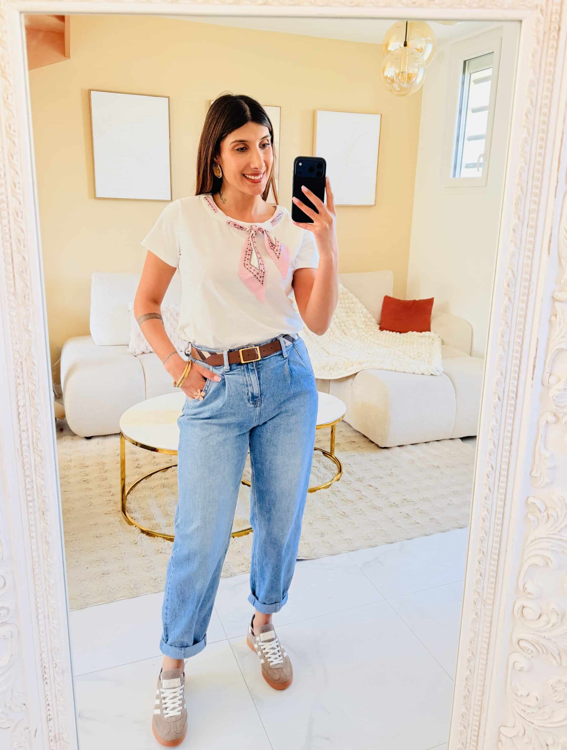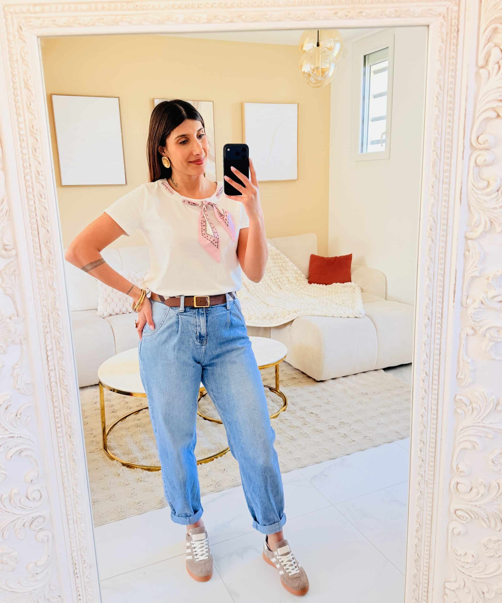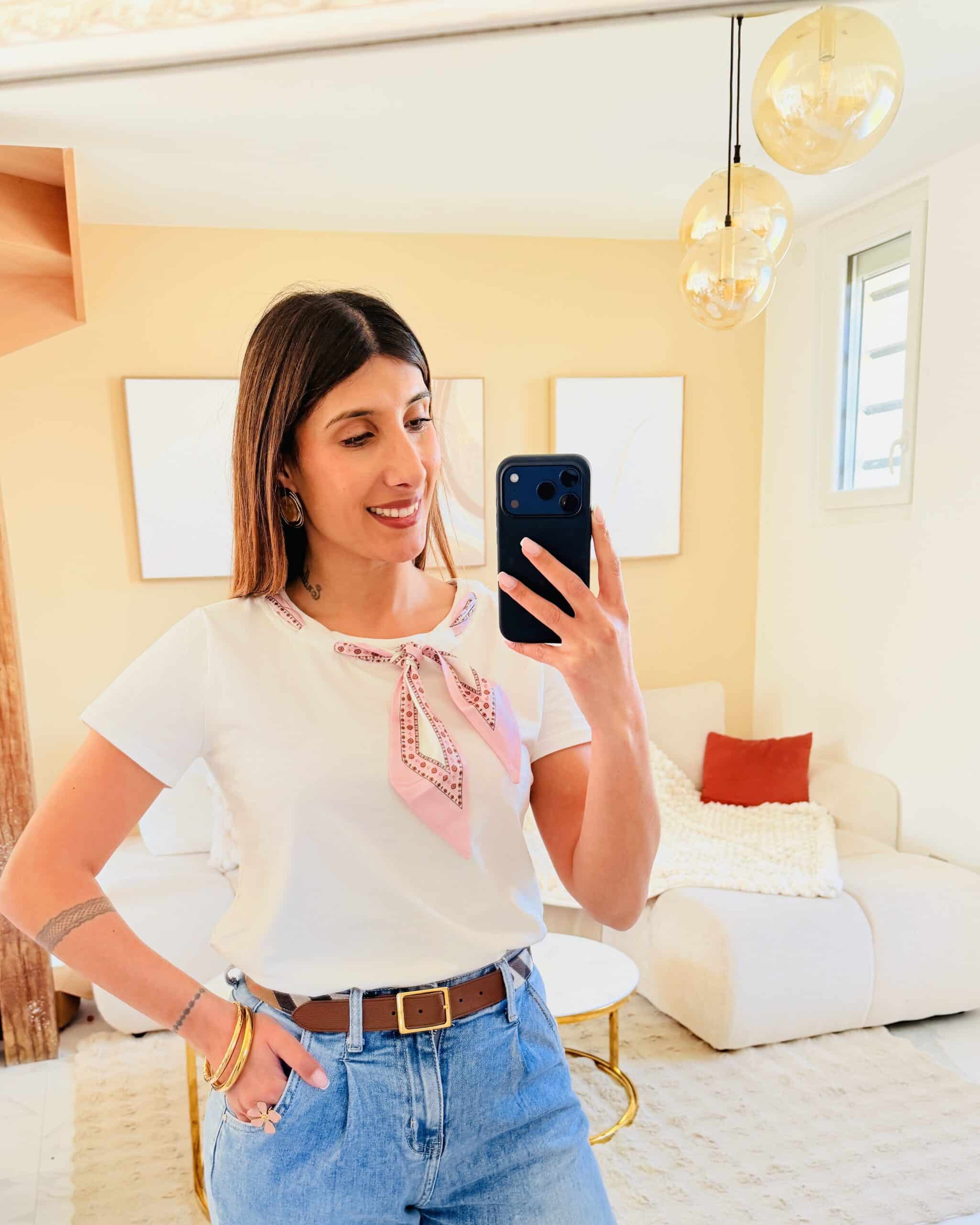 Joli top en coton avec foulard intégré à nouer comme vous souhaitez !