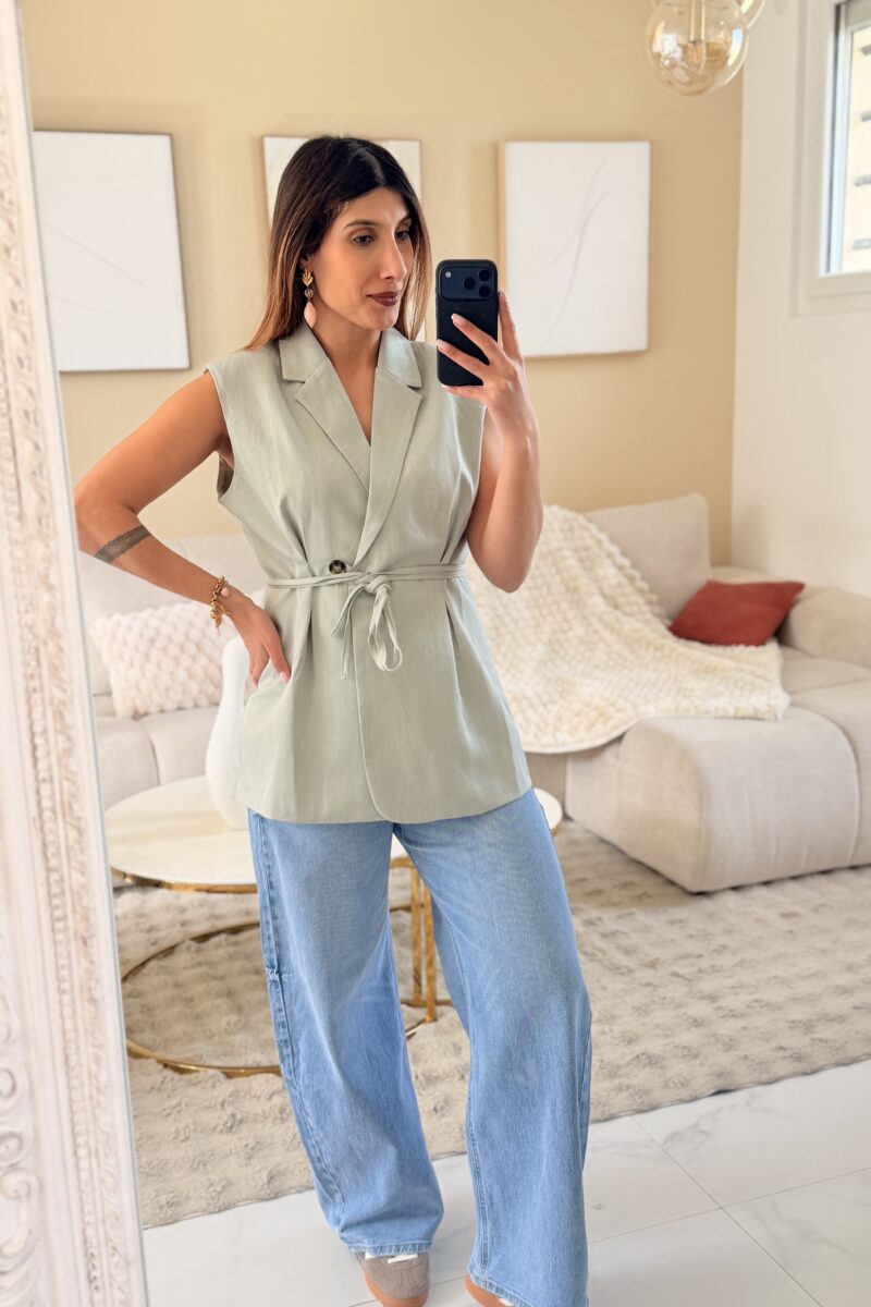 Blazer élégant avec ceinture sans manches couleur vert d’eau